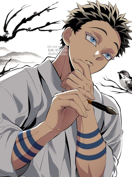 На жилистых руках, сжатых в кулаки, и шее Хакуджи проступили вены, и директор этой старшей школы увидел, как воздух вокруг паренька словно бы поплыл. Он застыл, во все глаза смотря на то, как над его подопечным образуется призрачная мёртвенно-бледная фигура с розовыми волосами и сине-жёлтыми глазами, чьи руки, тело и лицо покрывали сапфирового цвета татуировки.