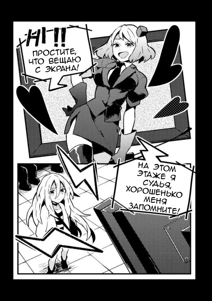 ""Хе-хе… Я здесь — судья! О, вы, грешные злодеи! Я буду наказывать вас до тех пор, пока вы не будете прощены! Потому что я та, кому было позволено это делать!""