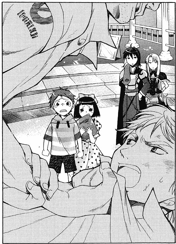 – П... проклятье... – хрипел схваченный за горло юноша. Как вдруг в атаку бросились дети: с воплем «не обижай братика!» Ибель кинулся на бандита, мучившего Тоале, но мальчугана попросту отпихнули прочь.
