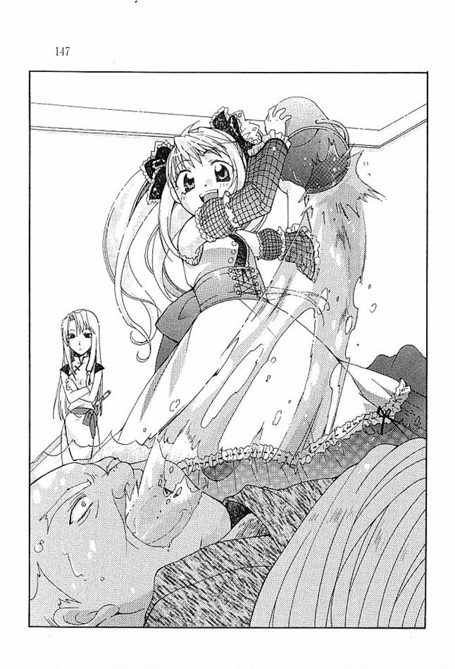 Вмиг мечница ткнула Ирис лицом в свой живот, схватив её за голову.