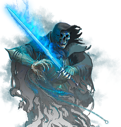 «Безумные призраки, нежить высокого уровня, внешне это призраки светло-синего цвета. На них надета мантия с капюшоном того же цвета, если сравнивать их по силе с авантюристами, то один призрак будет равен по силе авантюристу В(б) ранга.»