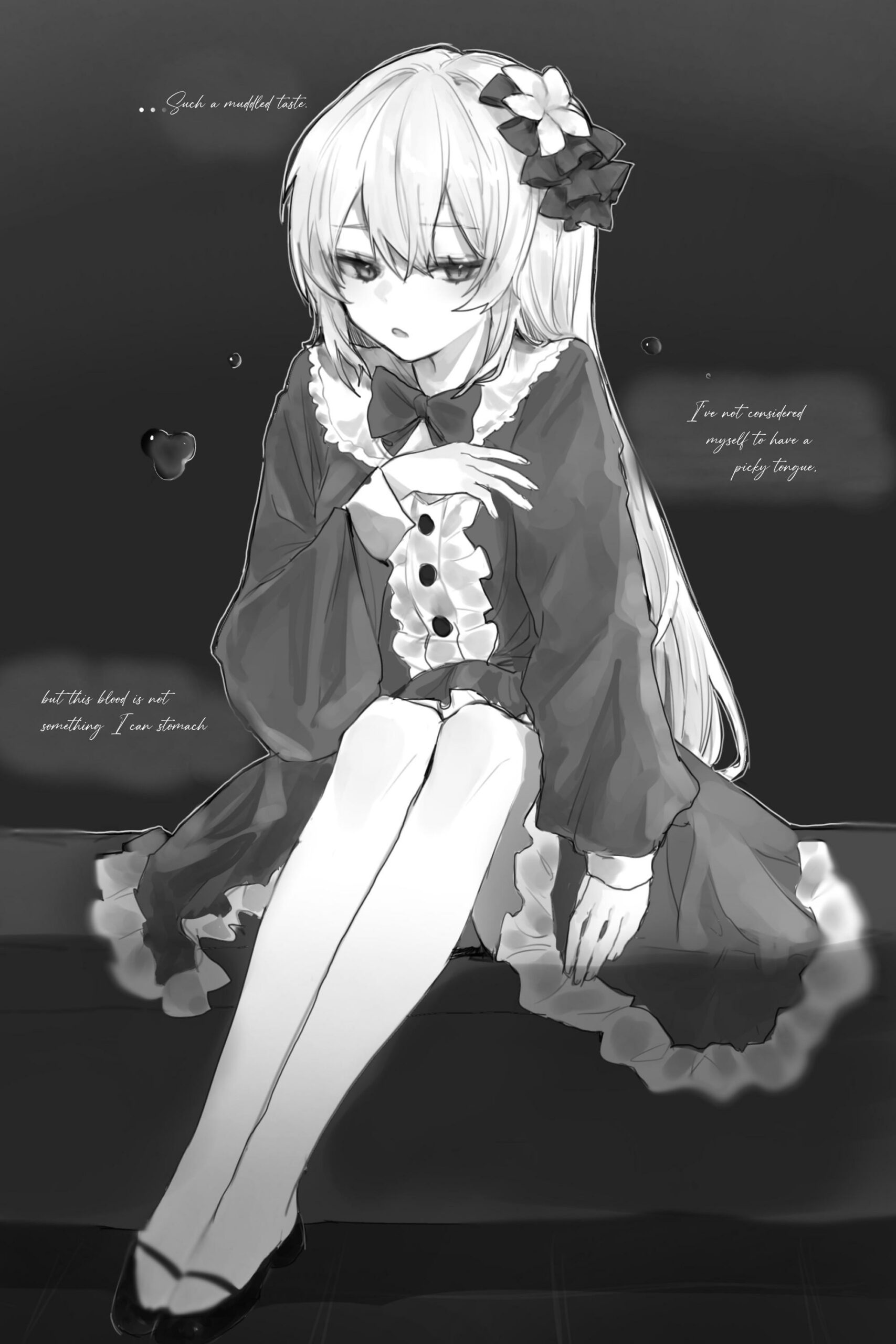 「… Такой запутанный вкус. Я не считала себя привередливой ко вкусу, но эта кровь не то, что я могу переварить.」