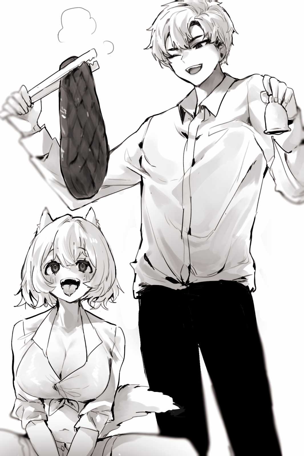 Как только она услышала звук колокольчика, я нарезал кусок недожаренного мяса и бросил ей. Аззи поймала его ртом, несмотря на удивление. Даже когда она жевала мясо, ее взгляд не отрывался от колокольчика.